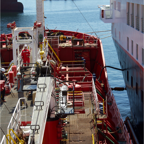 Entregamos combustibles y lubricantes en puerto o en alta mar a buques, armadores u operadores.